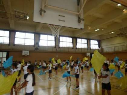 6年生はダンスだけでなく、なわを使ったり、旗をふったり、盛りだくさん!