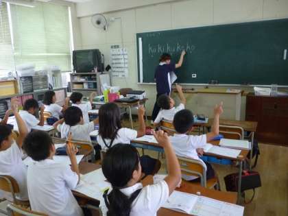授業終了後、感想を尋ねてみると、「ひらがなやカタカナに似ているところがあって、分かりやすい」「もっと勉強して、自分や家族の名前をローマ字で書いてみたい」といった声が聞かれました。新しい学習内容に、興味津津の様子です。