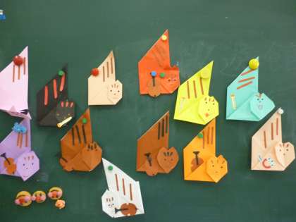 10月18日(火)第2校時の「あゆみの時間」では、11月のあゆみ学級前の掲示版を飾るために、「リス」を、大型折り紙で折りました。