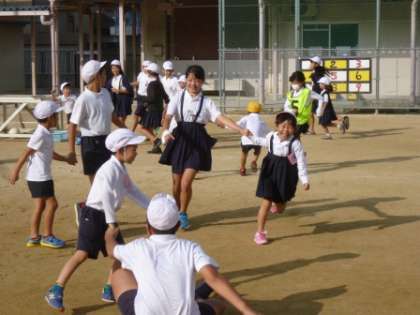 「手つなぎおにごっこ」をしました。集会委員の鬼にタッチをされると鬼になるので、ペアで協力しながら活動していました。