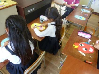 低学年は自分なりに工夫してユニークなお面づくりができました。