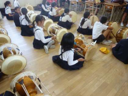 高学年は6年生が中心になってリードして、楽器演奏を行いました。