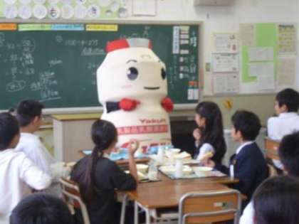 今日、1・4年で出前授業がありました。ヤクルト事業部管理栄養士の先生を招き、おなかを元気にするための方法を学びました。