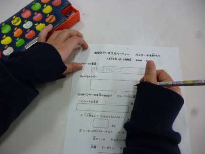 本日第2校時の「あゆみの時間」では、親子交流会(クリスマス・パーティー)で作る「パンケーキ作り」の計画を立てました。
