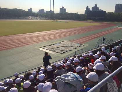 6年生が、長居陸上競技場にスポーツ交歓会に来ています。