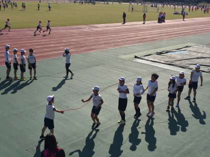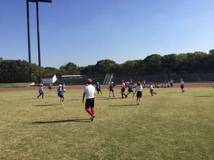 午前中は、サッカー・ドッジボールを各コートに分かれて他校と試合しています。