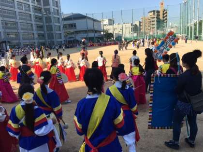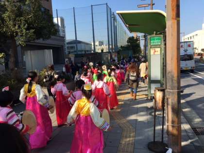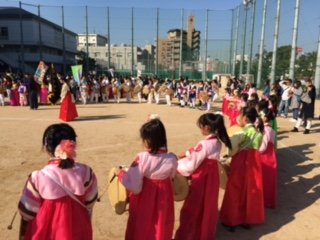 舎利寺小学校から桃谷高校まで、パレードを行いました。会場には、参加者がたくさん集まりました。