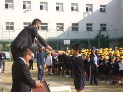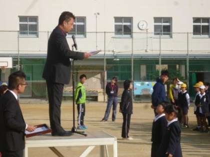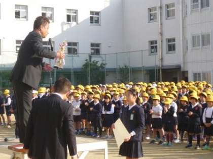 今日の児童朝会では、トランポリンの全国大会、東部子ども民族文化祭、中国語弁論大会とたくさんの表彰がありました。