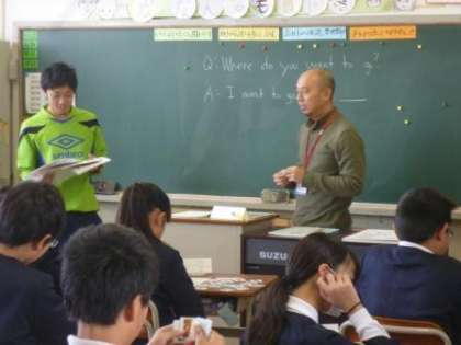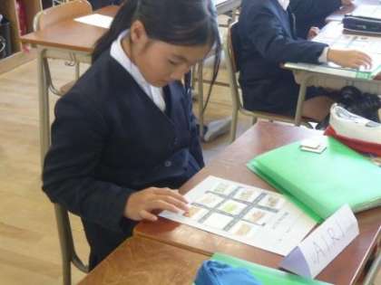 子どもたちはあらかじめ用意された地図に自分だけの地図を作ります。その地図をビンゴカードとして、担任とC-NET講師の「 Where do you want to go? 」(あなたはどこへ行きたい?)「 I want to go to 〜. 」(私は〜に行きたい。)のかけあいでビンゴを行うというゲームをしました。みんな元気よく発音し、ゲームを楽しむ姿が印象的でした。