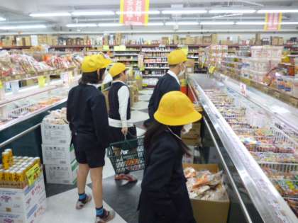 実際にスーパーマーケットで買い物を始めると、自分たちで出した注意点をしっかりと守って、高学年児童が中心になって、班ごとに協力しながら買い物実習ができました。来週のパーティーが、今から楽しみです。