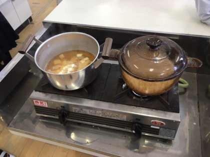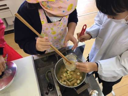 ごはんとおみそ汁を作りました。役割を分担するなど、協力して取り組みました。