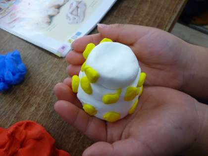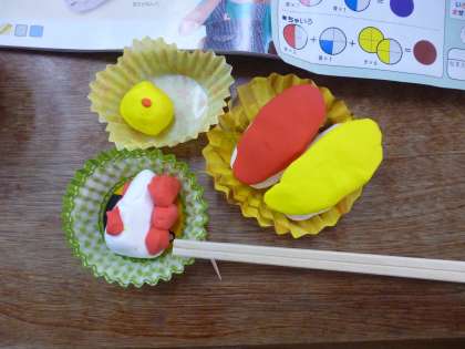 この日の図画工作科では、先週の油粘土遊びをふまえて、紙粘土で「ごちそうパーティーをはじめよう!」という課題で、作品を造りました。