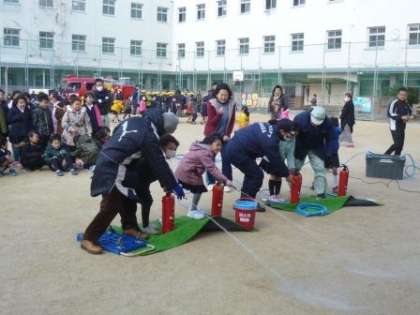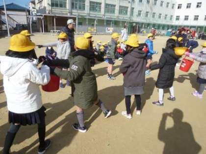 2・3年生の『消火器体験』『バケツリレー』の様子です。
