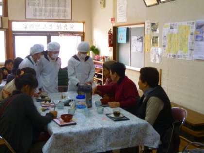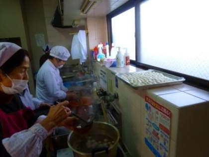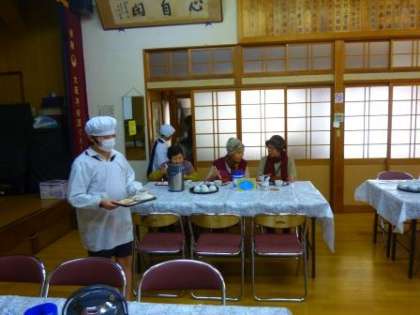 会館に来られた方へのお手伝いとして、配ぜんする係や食器を洗う係等、役割を分担して活動することができました。
