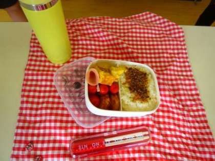 昨日と同様、班で協力して上手に弁当を作ることができました。
