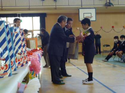 卒業生へのプレゼント、在校生お祝いの言葉、卒業生のお礼の言葉に続いて、本校3年による歌のプレゼント(「世界が1つになるまで」)がありました。学校からのものに加えて、ライオンズクラブからも、素敵なプレゼントをいただきました(写真・下)。