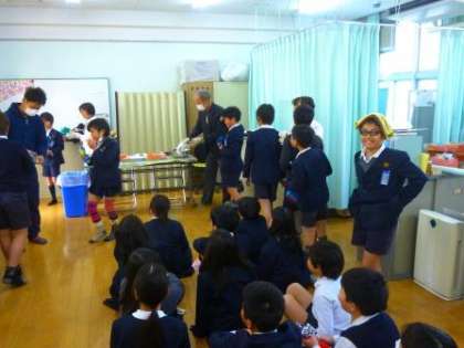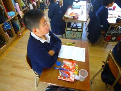 教室での歯みがき指導後、保健室でフッ素をつけてもらいました。