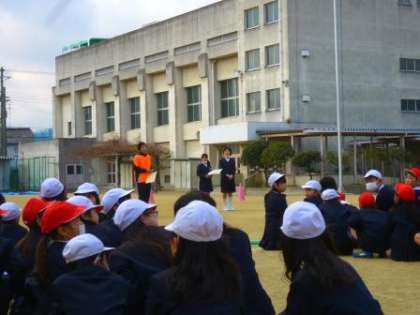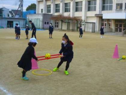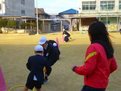 ペアで協力して棒を持ち、間にボールをはさんで運ぶ速さを競うゲームでした。ボールを運んだ先に集会委員が待っていて、最後にじゃんけんで勝たないと次のペアに変われません。どのチームも勝てるように応援しながら楽しく活動することができました。