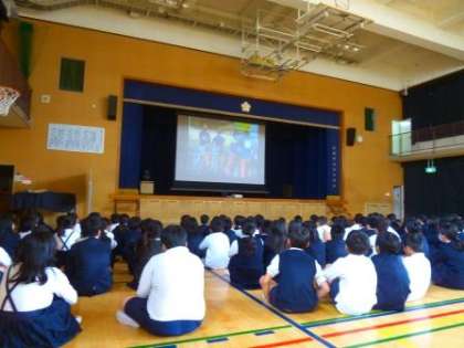 3・4時間目に学習した3〜6年生は、講堂で正しい自転車の運転の仕方を学びました。DVDを視聴し、けがをしないように、またけがをさせないようにするための方法を、わかりやすく教えていただきました。