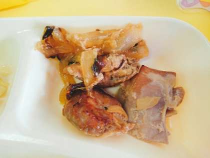 鶏肉の甘辛焼きは鶏肉とたまねぎを料理酒・砂糖・みりん・こい口しょうゆで下味をつけ焼きあげています。大変人気のあるおかずです。