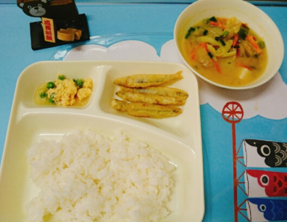 今日のえんどう豆の卵とじ(卵)は個別対応献立でした。