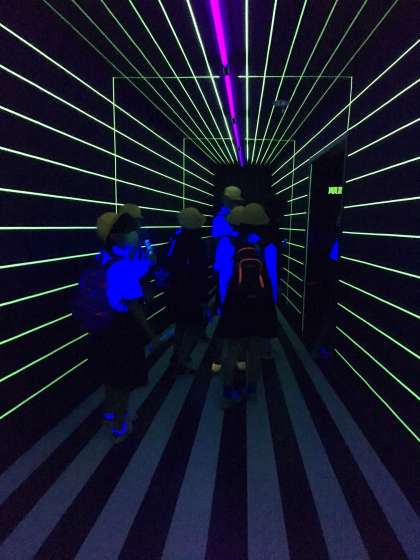 透視図法で描かれた通路やブラックライトを利用したマジカルグラフィックスなど、「錯視・錯覚」の体験。