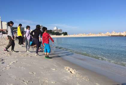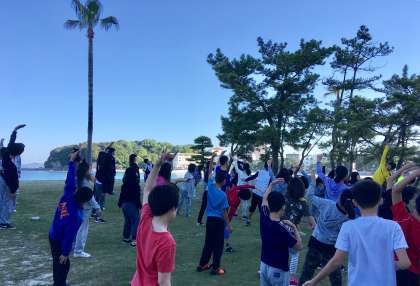 2日目の朝、ラジオ体操の後、白良浜で