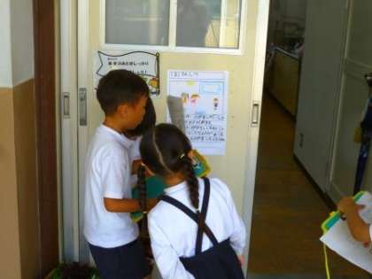 2年生は授業中ということもあり、「静かにいくよ〜。」や「職員室は先生方がいっぱいいるよ。」など1年生に優しく教えている姿がとてもすばらしかったです。