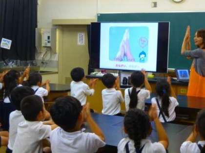 花王株式会社の方を講師に招き、手洗いの大切さを学びました。