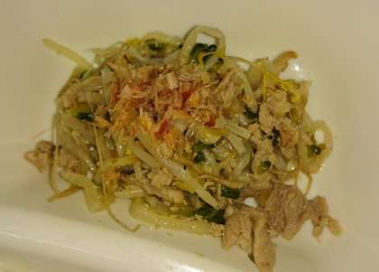 ゴーヤチャンプルーにはかつおぶしがつきました。
