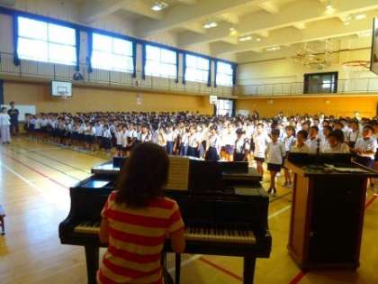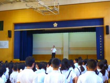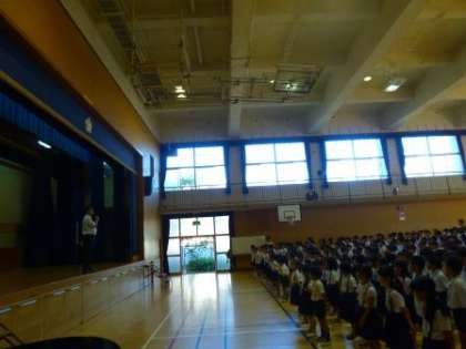 校長先生からは、早寝・早起き・朝ごはんの規則正しい生活をすること。そして、家族で過ごす時間が長くなるのでしっかり家の仕事をすること。めあてをしっかりもってこの長い夏休みを有意義に過ごすようにというお話がありました。