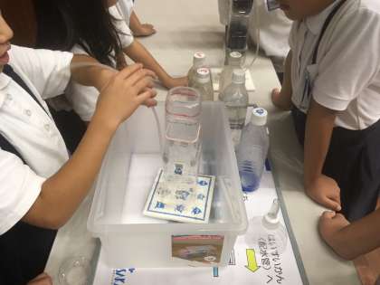 柴島浄水場へ行きました。浄水処理施設の見学や、浄水処理工程の一部(砂ろ過・粒状活性炭)の実験をしました。臭いのする泥水が、透明な無臭の水に変化し、みんな驚いていました。