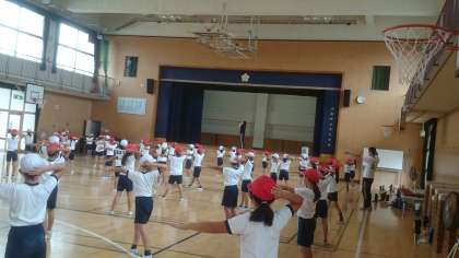細かな振り付けを確認し、曲に合わせて練習の繰り返し。完成にはまだまだかかりそうですが、一生懸命先生の指示を聞いて頑張っています。