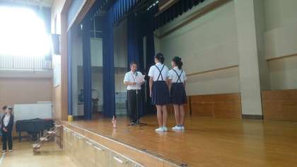 朝会の中で、先日のミニバスの大会で優勝した表彰も行われました。また、今週行われる手洗い強調週間の連絡もありました。