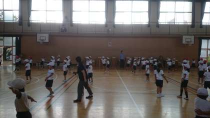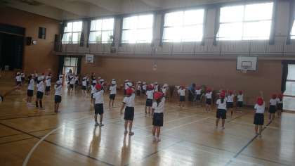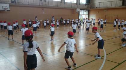 『ワンピース』の曲で、元気よく先生と動きを確認しながらダンスをする姿が印象的でした。