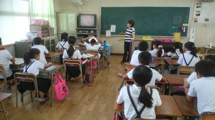 アルファベットを何度も練習するクラス。英語の物語を静かにリスニングするクラス。体を使って今の気持ちをジェスチャーで表現するクラス。今日もさまざまな形で英語に親しむことができました。