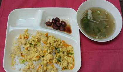 今日の親子丼は個別対応献立(卵)でした。
