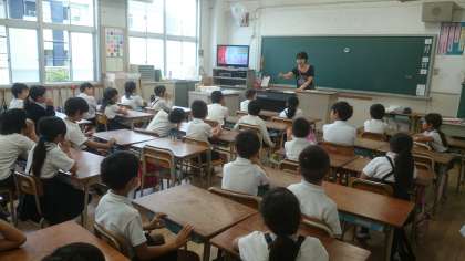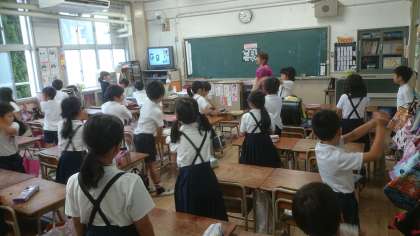 今日も楽しくそれぞれの学級で、英語に親しむことができました。