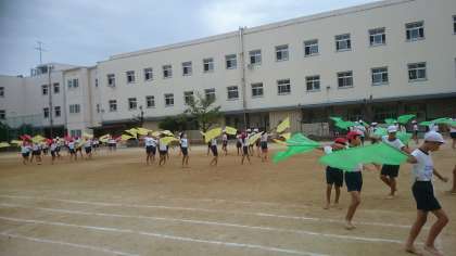 本番まであと1週間になりました。運動場で移動する場所、タイミングなどをていねいに確認していきました。