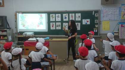 運動会まであと1日。最後の練習にむかう前に、金曜日の朝ということで「English Time!」がありました。