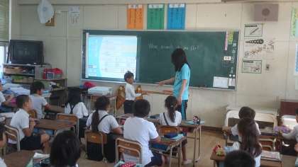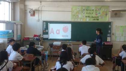 1年生は、1時間目に運動会の練習があるので、体そう服に着替えて行っています。どの学年もアルファベットをきちんと発音できるようになってきています。