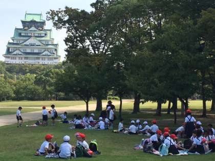 大阪城を見学した後は、西の丸庭園でお昼ご飯です。