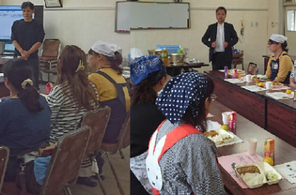 PTA給食試食会の様子です。巽南小学校の栄養教諭の先生からは「野菜をたべましょう」という題で色々な野菜の働きや摂取量、取る為の工夫等を講義していただきました。