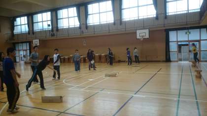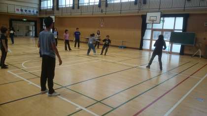 10月25日・26日に行う『巽ワールドフェス』のゲームを教職員でためしに行いました。子どもたちは、韓国の「トゥホ」(壺に矢を投げ入れる遊び)やフィリピンの「パチンテロ」(鬼ごっこ)など、世界の遊びを体験することにより各国の文化に親しむことになります。