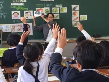 栄養教諭の先生に、野菜をテーマに指導していただきました。野菜のはたらきや分類、野菜の効果的な食べ方などについて学習しました。子どもたちは、お話をしっかり聞き、積極的に発言しながら、学習を進めることができました。