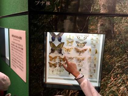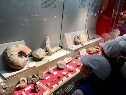和泉層群のアンモナイトなどの化石や蝶などの標本です。