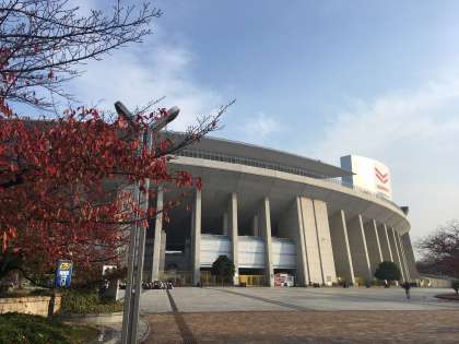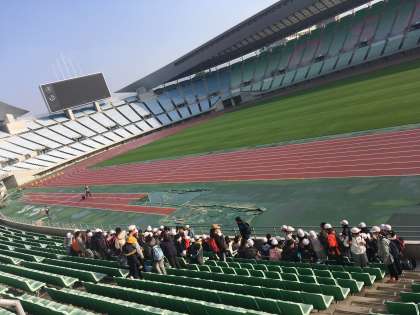 6年生 総合スポーツ交歓会で、長居公園にあるヤンマースタジアム長居に到着しました。