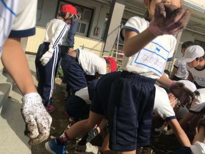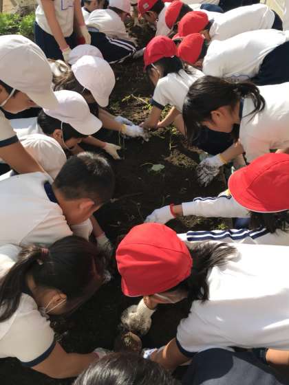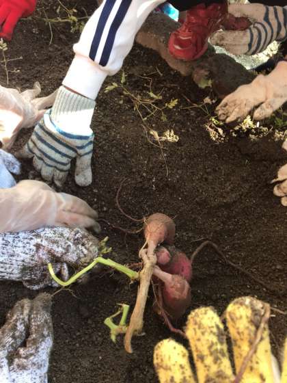 秋になり大きく育ったいもを、生活科の学習の中で掘り起こしました。このいもを使って12月に『おいもパーティー』をする予定です。