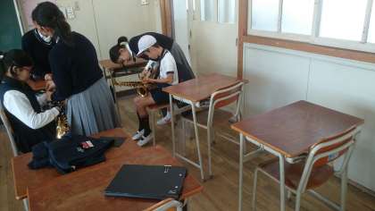 小学校から中学校に上がるときのギャップを少なくするために行われた『小中交流かけはし事業』の様子を一部紹介します。(写真は新巽中学校での活動の様子です)