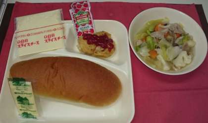 とうふハンバーグにはケチャップ(1人1袋)、コッペパンにはマーガリンがつきました。